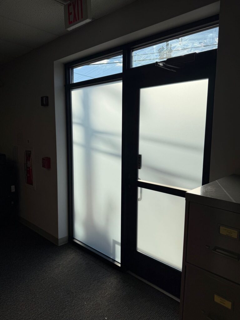 This week, progress continued on a commercial office remodel in Pottstown, where we’re installing privacy film on custom glass walls and doors. The goal here is balance: