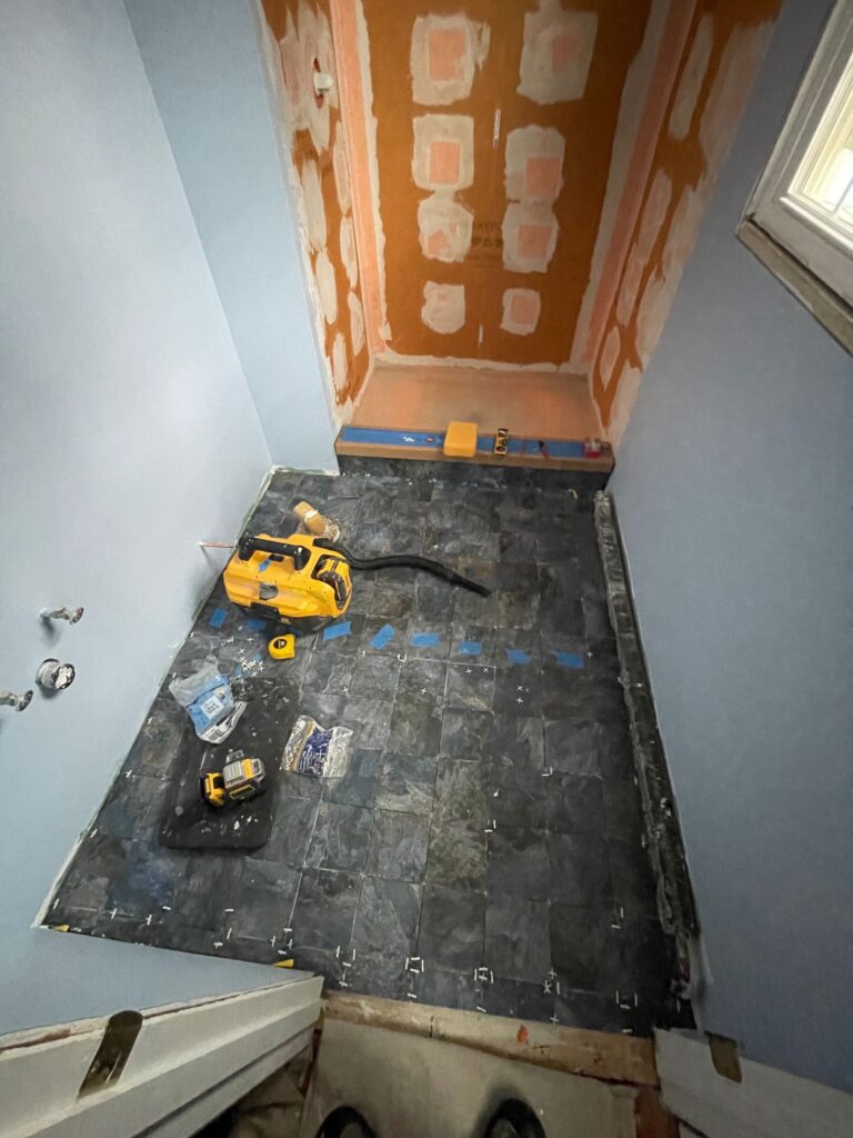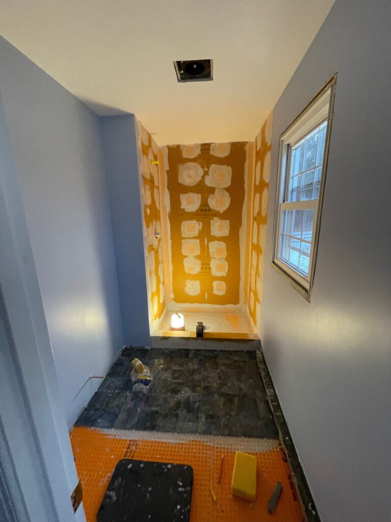 At Marvel Builders, we believe that the longevity of a bathroom remodel depends far more on the systems behind the tile than the tile itself. This week our team continued work on a double bathroom renovation in Pottstown, Pennsylvania, focusing heavily on two industry-leading tile installation systems: the Schluter Kerdi waterproof shower system and the Schluter Ditra uncoupling floor membrane.