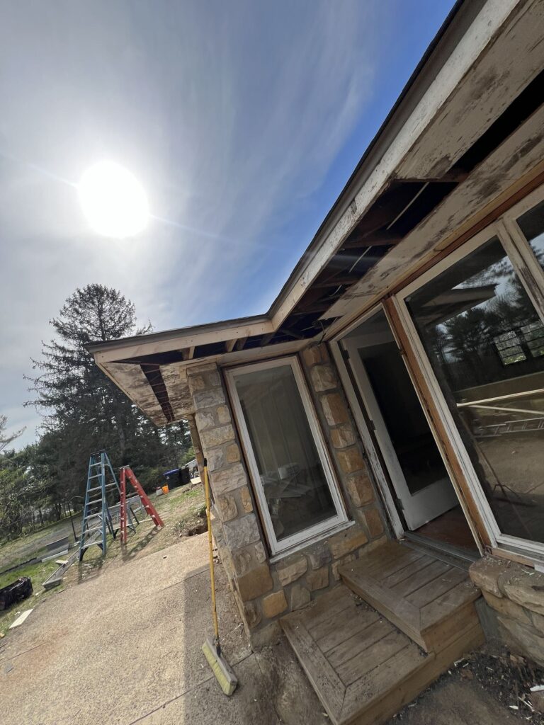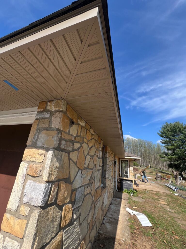 After opening the soffits, we began installing new aluminum soffit panels to provide a durable, low-maintenance finish.